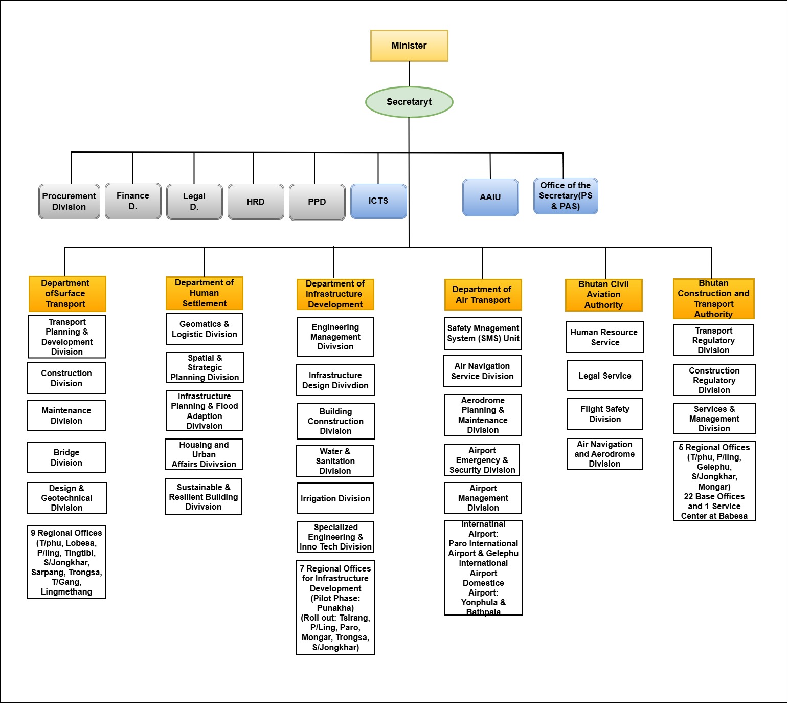 To be a dynamic organization for building quality and sustainable infrastructure, efficient transportation services, and built environment for socio-economic well-being and happiness