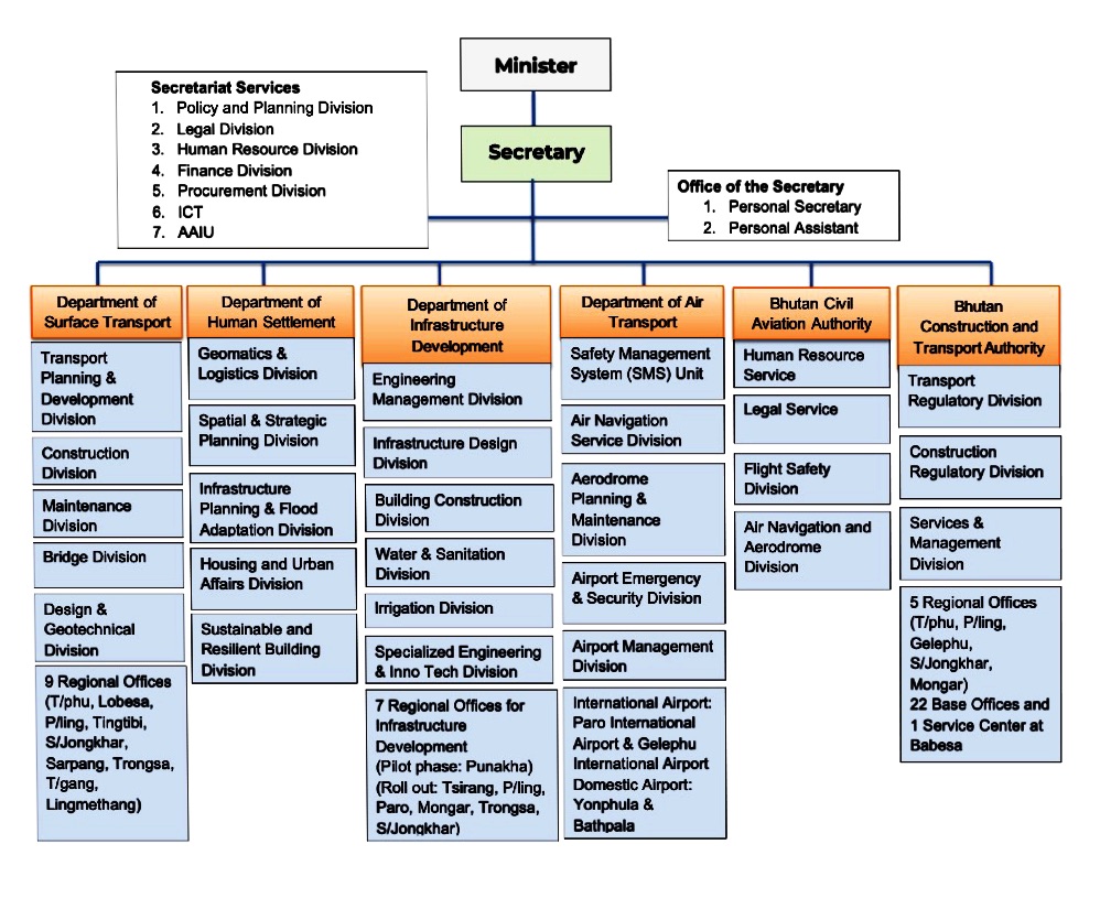 To be a dynamic organization for building quality and sustainable infrastructure, efficient transportation services, and built environment for socio-economic well-being and happiness
